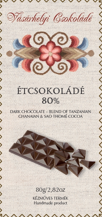 Étcsokoládé 80% kakaótartalommal, díszdobozban.