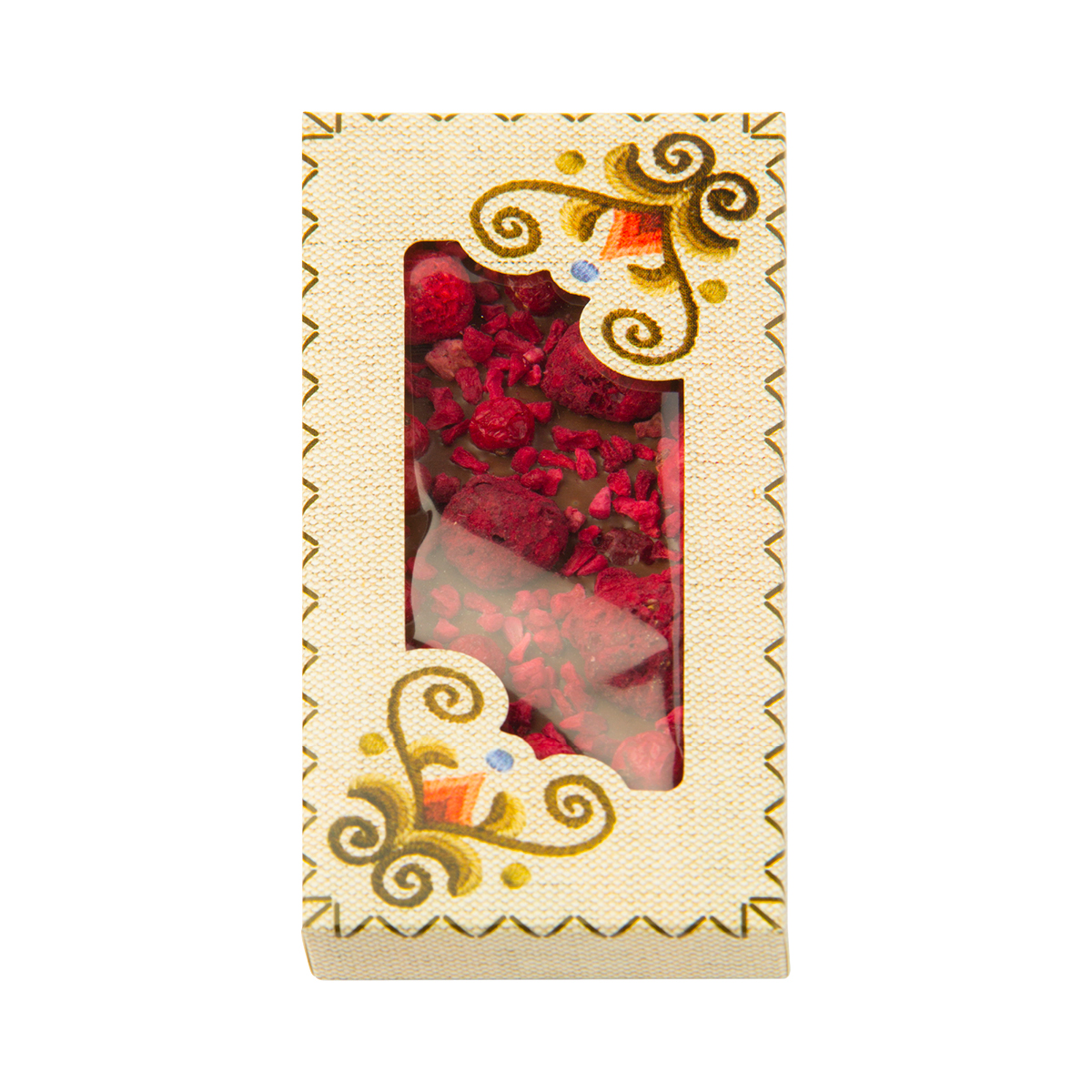 Tejcsokoládé málnával és piros ribizlivel (45g)