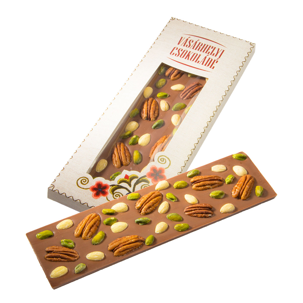 Tejcsokoládé pekándióval, mandulával és pisztáciával